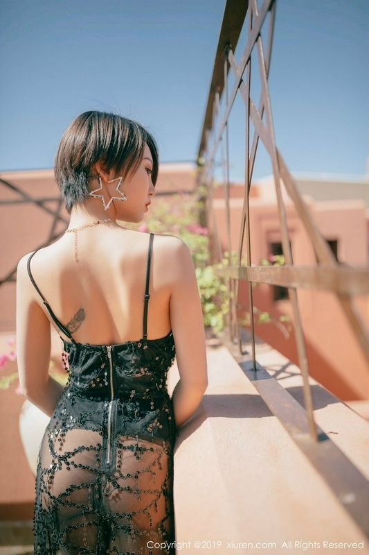 女神冯木木LRIS心愿旅拍黑色内衣配无内黑丝裤袜火辣诱惑写真